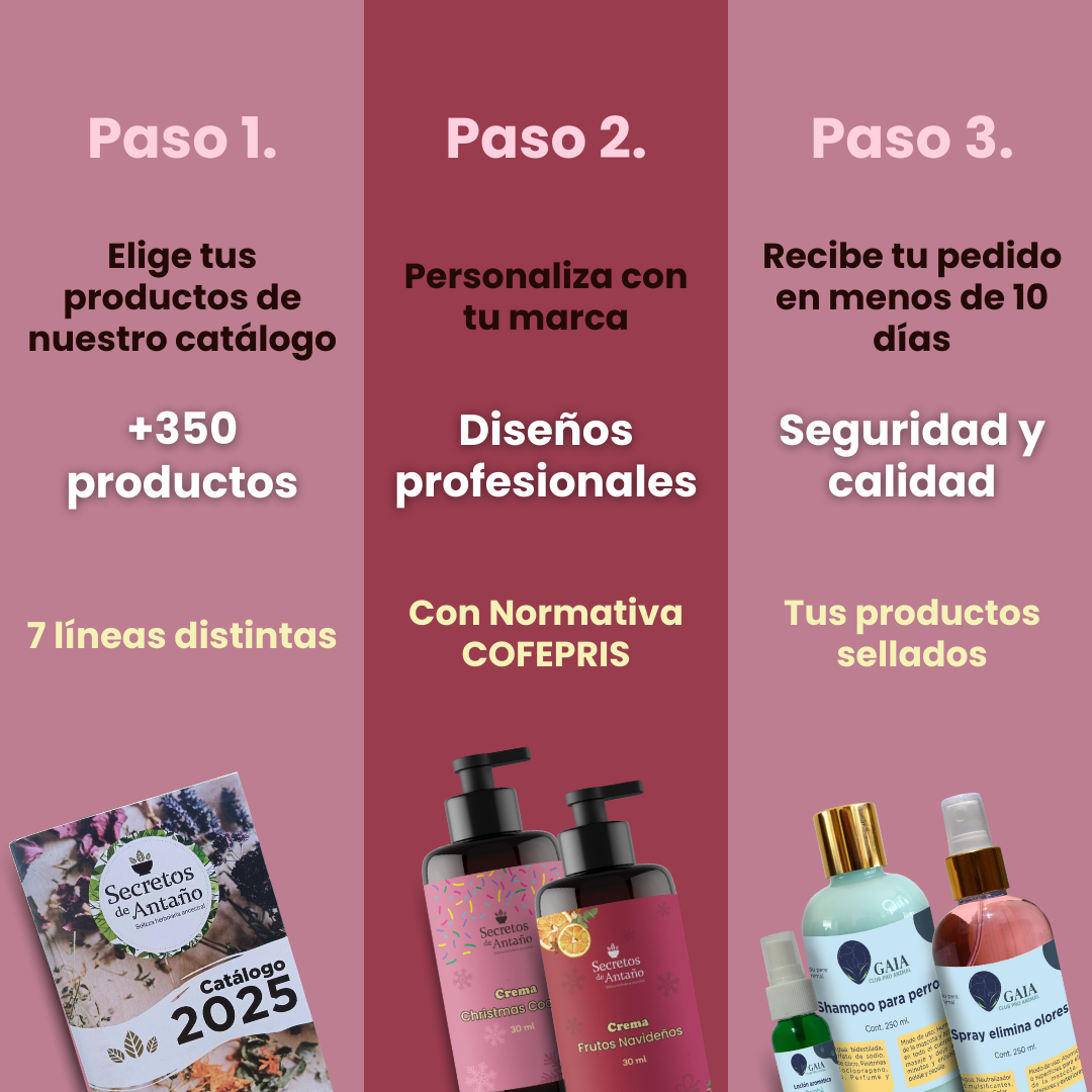 Crea tu propia marca de cosméticos en sólo 3 pasos. Elige alguno de nuestros productos, personaliza tus etiquetas y recibe en menos de 15 días.